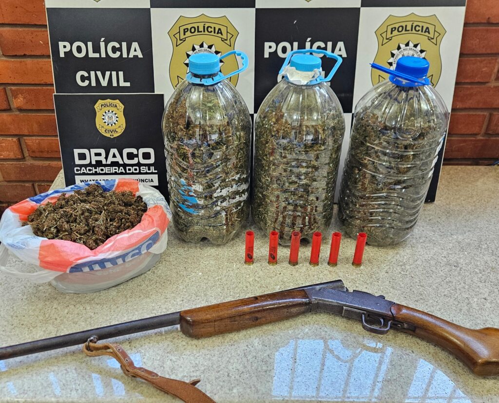 Homem é preso com maconha avaliada em R$ 100 mil e porte ilegal de arma em Cachoeira do Sul