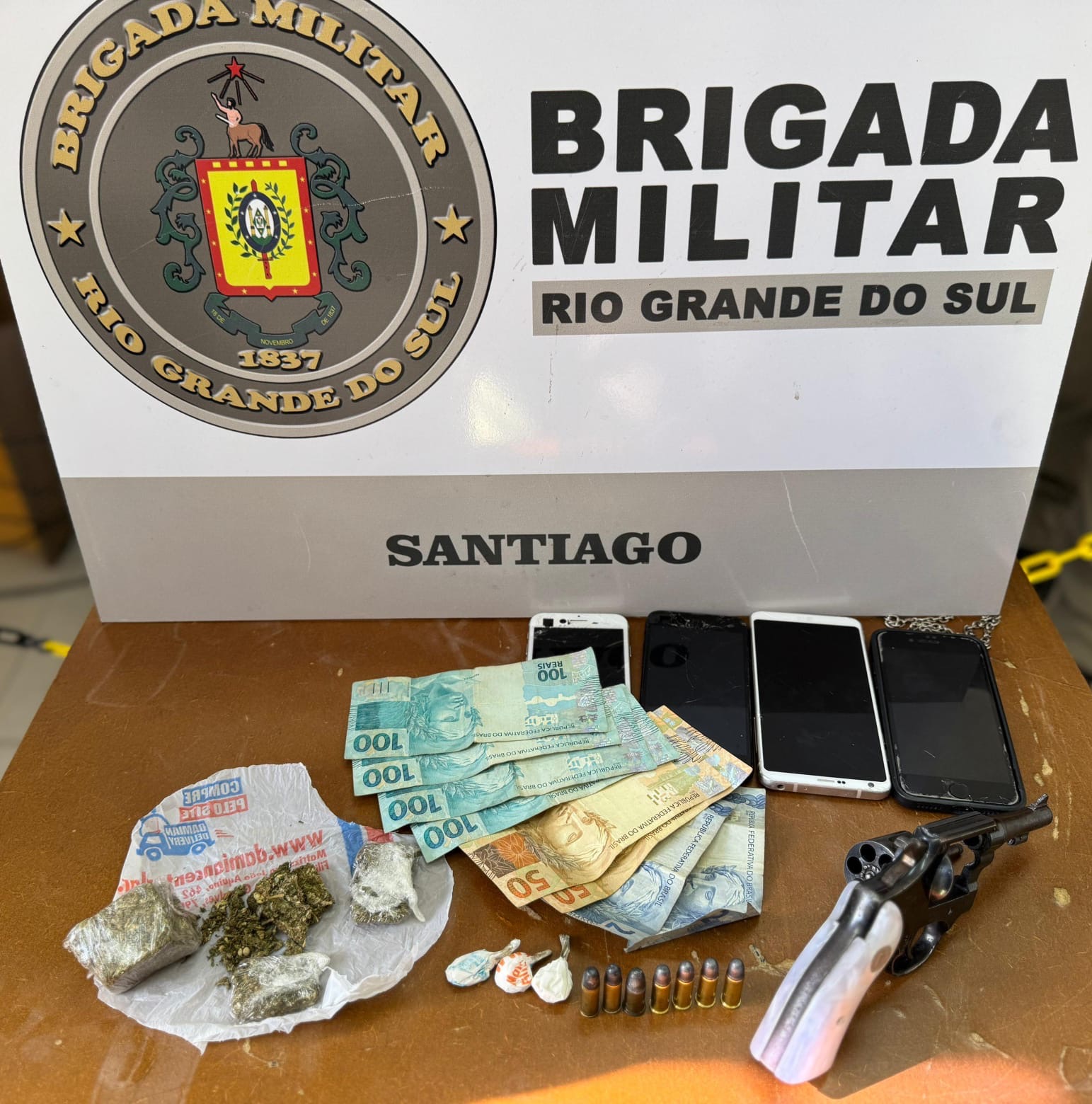 Ação da Brigada Militar resulta em prisão, apreensão de drogas e arma de fogo em Santiago