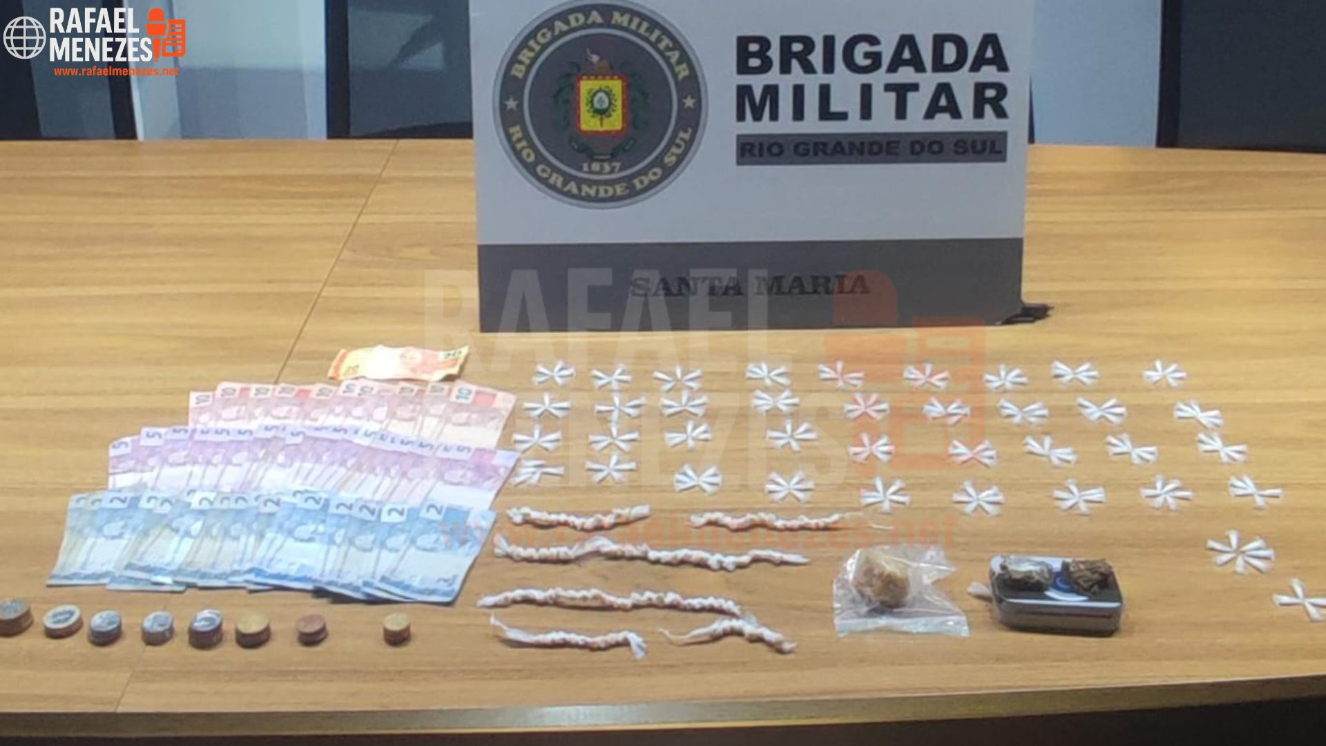 Um adolescente de 16 anos foi apreendido na noite desta quinta-feira (19), por tráfico de drogas no bairro Passo D’Areia, em Santa Maria. A ação foi realizada pela Brigada Militar, por meio da Força Tática do 1º Regimento de Polícia Montada (1º RPMon), durante patrulhamento em um ponto conhecido pela comercialização de entorpecentes.