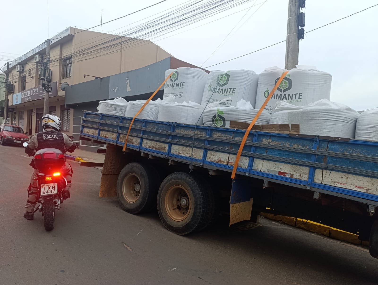 Uma carga de fertilizantes foi apreendida pela Brigada Militar na terça-feira (4), em Santiago. A ação foi realizada pela equipe da ROCAM, após acionamento do COPOM para atendimento de uma ocorrência envolvendo um possível crime de ameaça, originado de um desacordo comercial.
