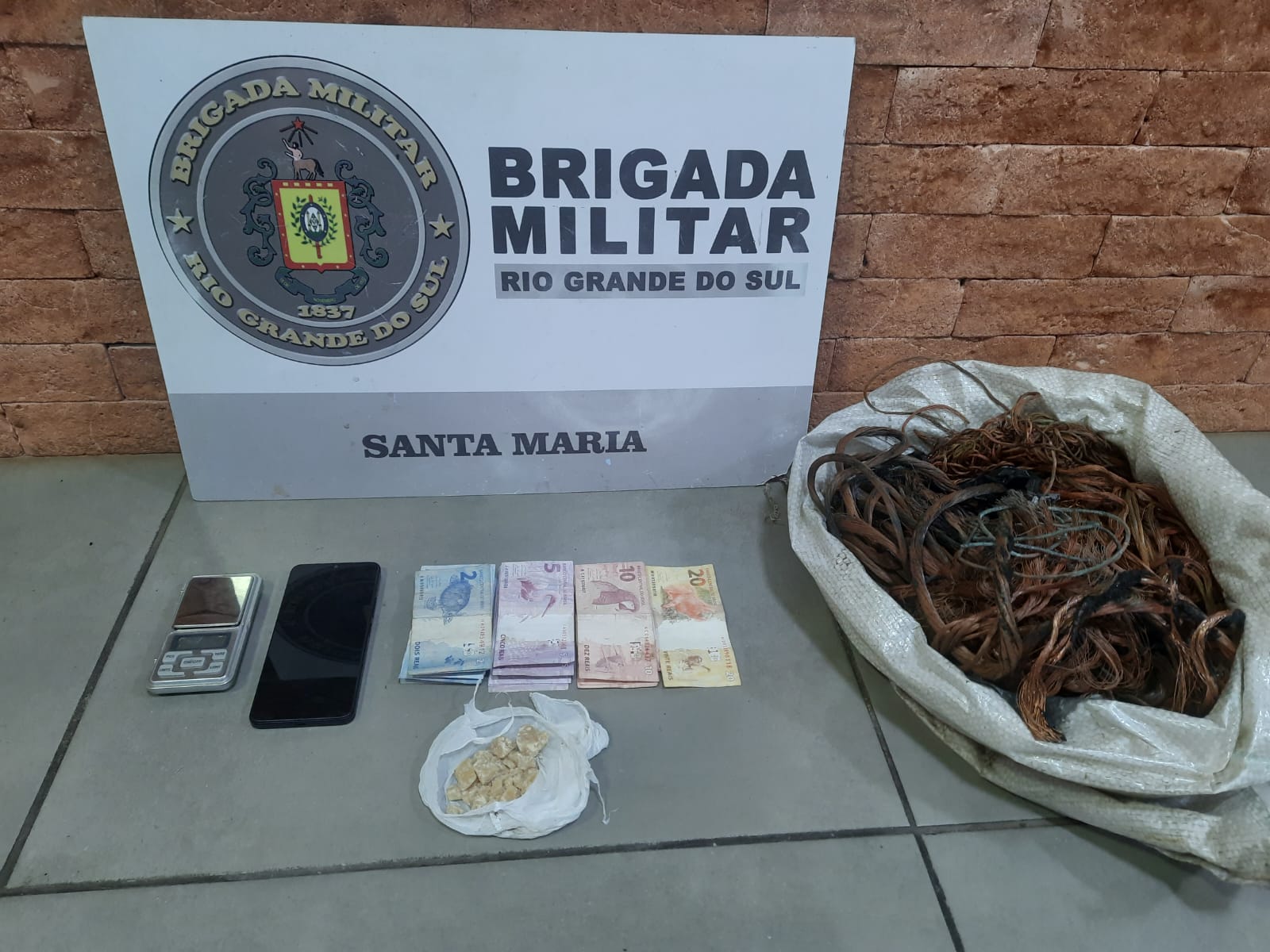 Na busca realizada na casa, foram apreendidos 25 gramas de crack, R$ 112, 4,6 quilos de fios de cobre, um celular e uma balança de precisão.
