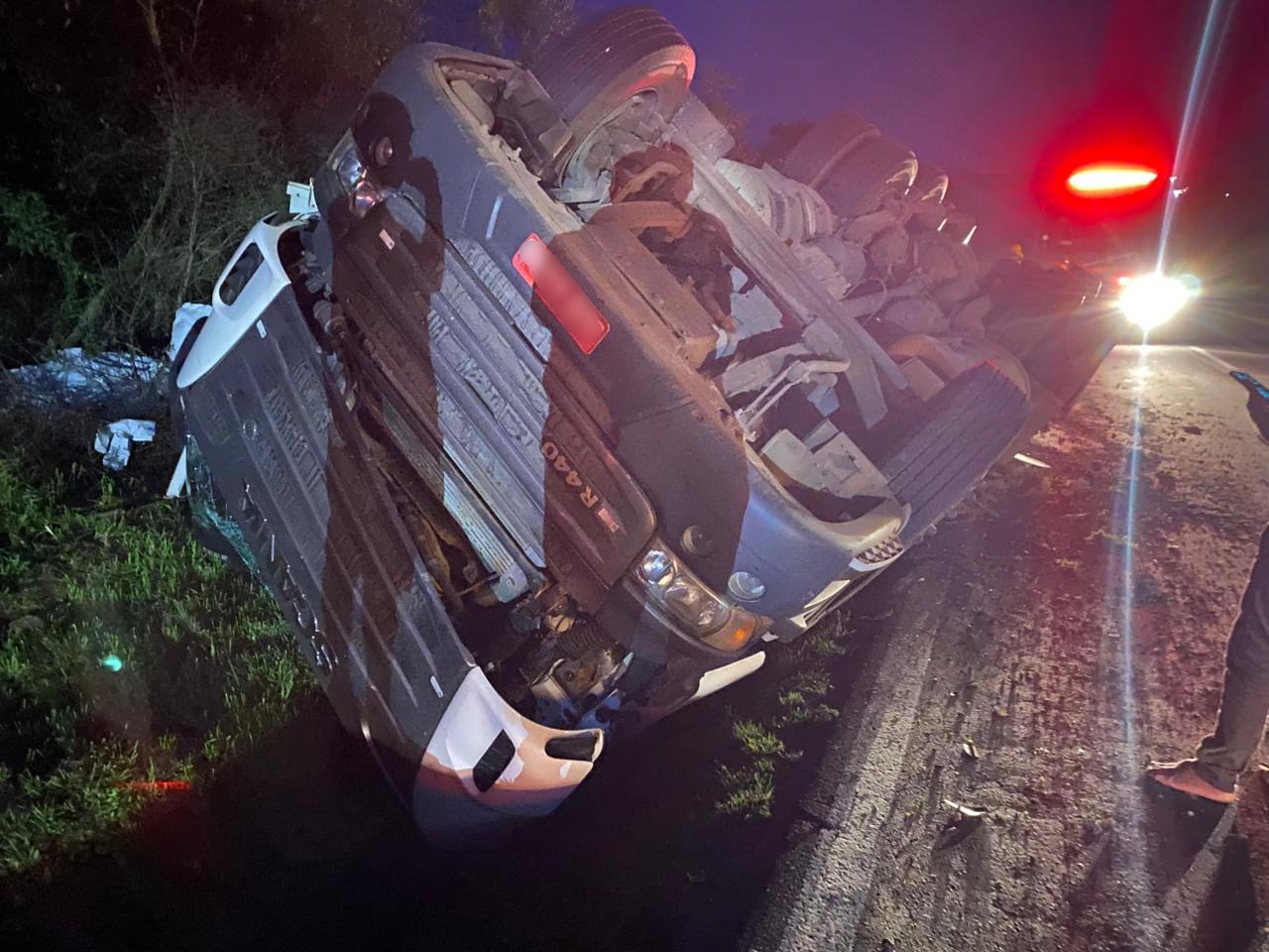 De acordo com informações preliminares, o motorista perdeu o controle do veículo, que saiu da pista e acabou tombando. Apesar do acidente, o condutor não se feriu, havendo apenas danos materiais.