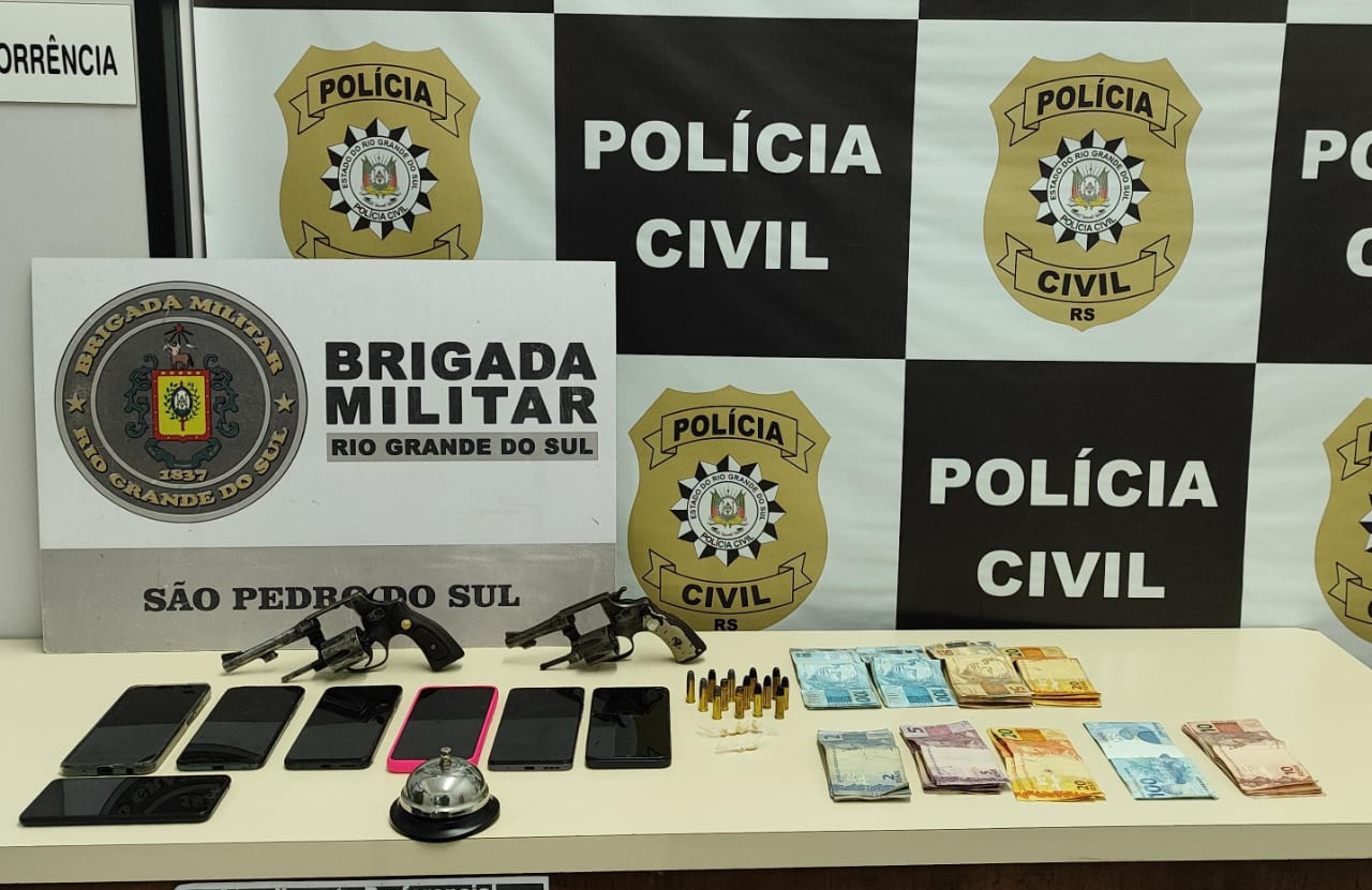 De acordo com a Polícia, a prisão ocorreu durante o cumprimento de um mandado de busca e apreensão, resultado de uma investigação prévia. No local, foram apreendidas seis pedras de crack, dois revólveres calibre 32, 14 cartuchos do mesmo calibre, além de mais de R$ 4,5 mil em dinheiro.