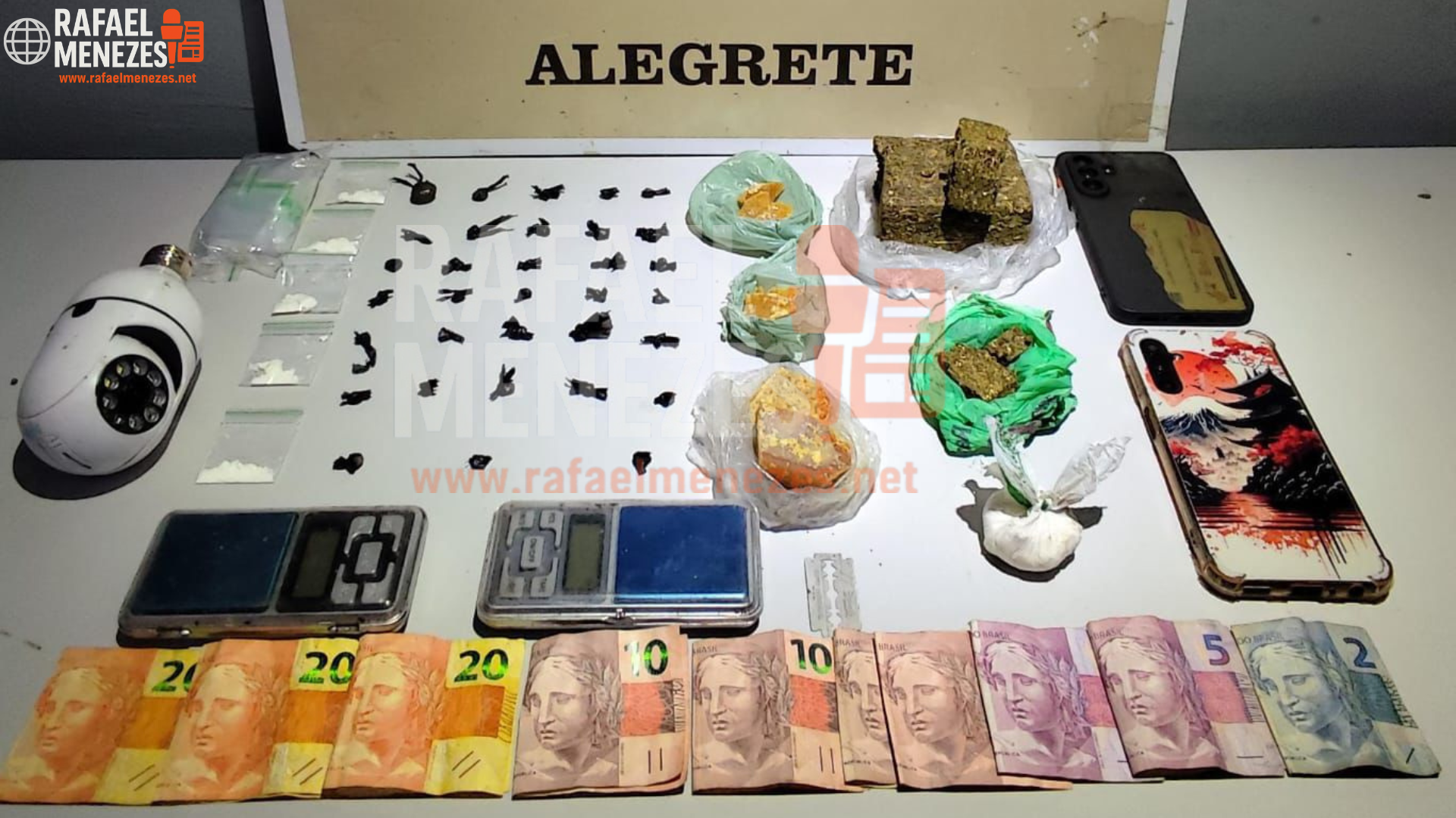 Além das drogas, a Brigada Militar apreendeu balanças de precisão, celulares, dinheiro em espécie e materiais utilizados para fracionar e comercializar os entorpecentes.