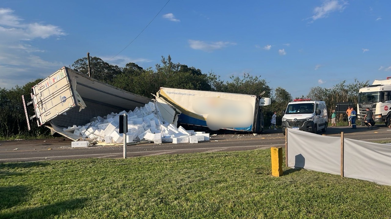 Um acidente envolvendo um caminhão e uma carreta foi registrado no final da tarde desta sexta-feira (19), no trevo de acesso ao município de São Vicente do Sul, na BR-287.