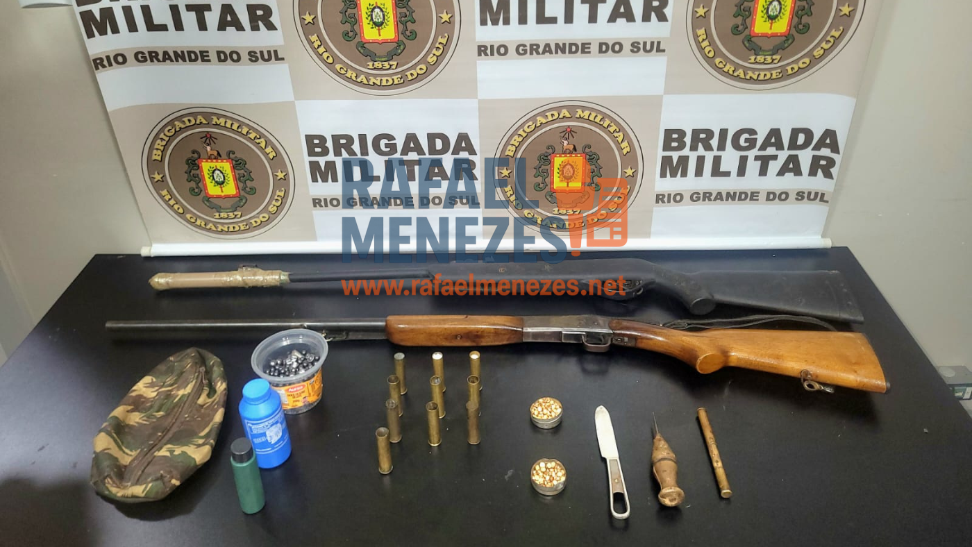 Ao chegarem no local, os policiais perceberam, pelas frestas das tábuas da casa, que o suspeito tentava esconder as armas na parte superior do roupeiro. O homem, então, abriu a porta e, ao ser questionado sobre as armas, informou ser caçador.