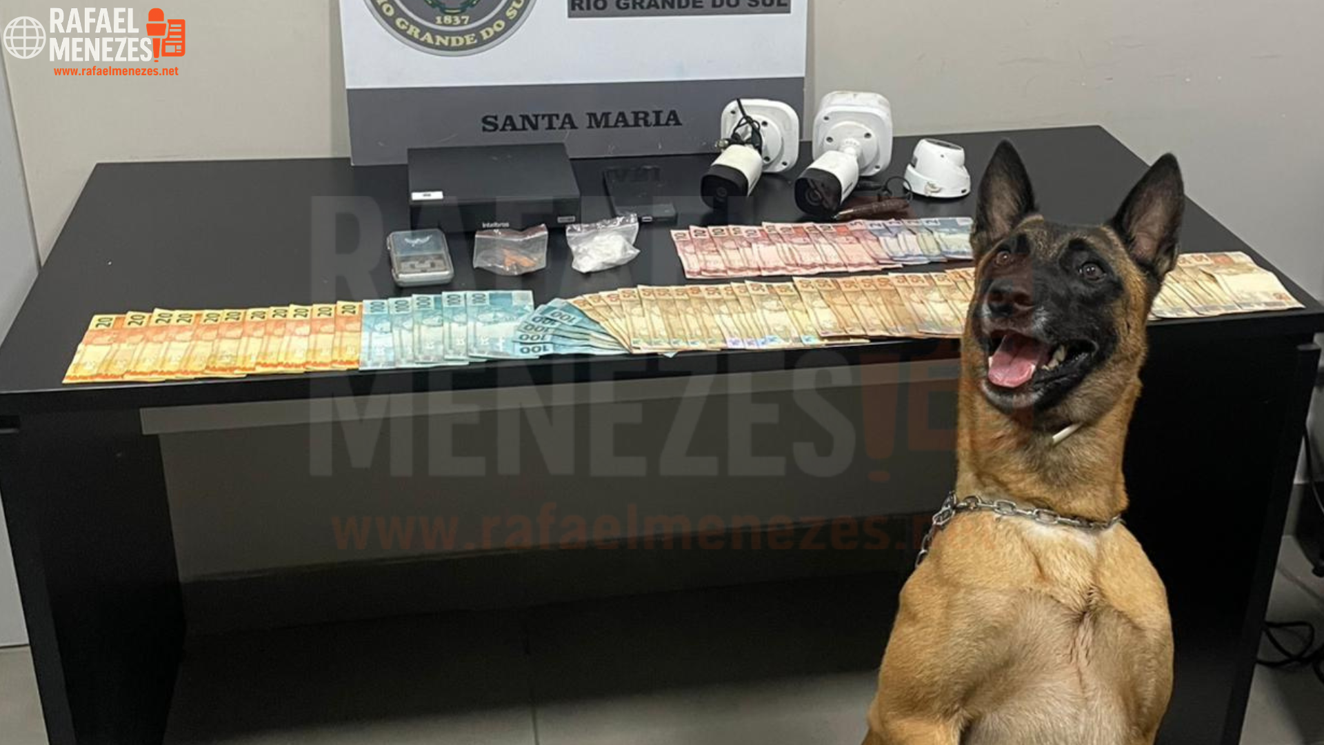 No local durante o cumprimento da ordem foi apreendido 36 gramas de cocaína, 0,3 gramas de sementes de maconha, três câmeras de monitoramento, um aparelho de DVR e  E$ 3.123.