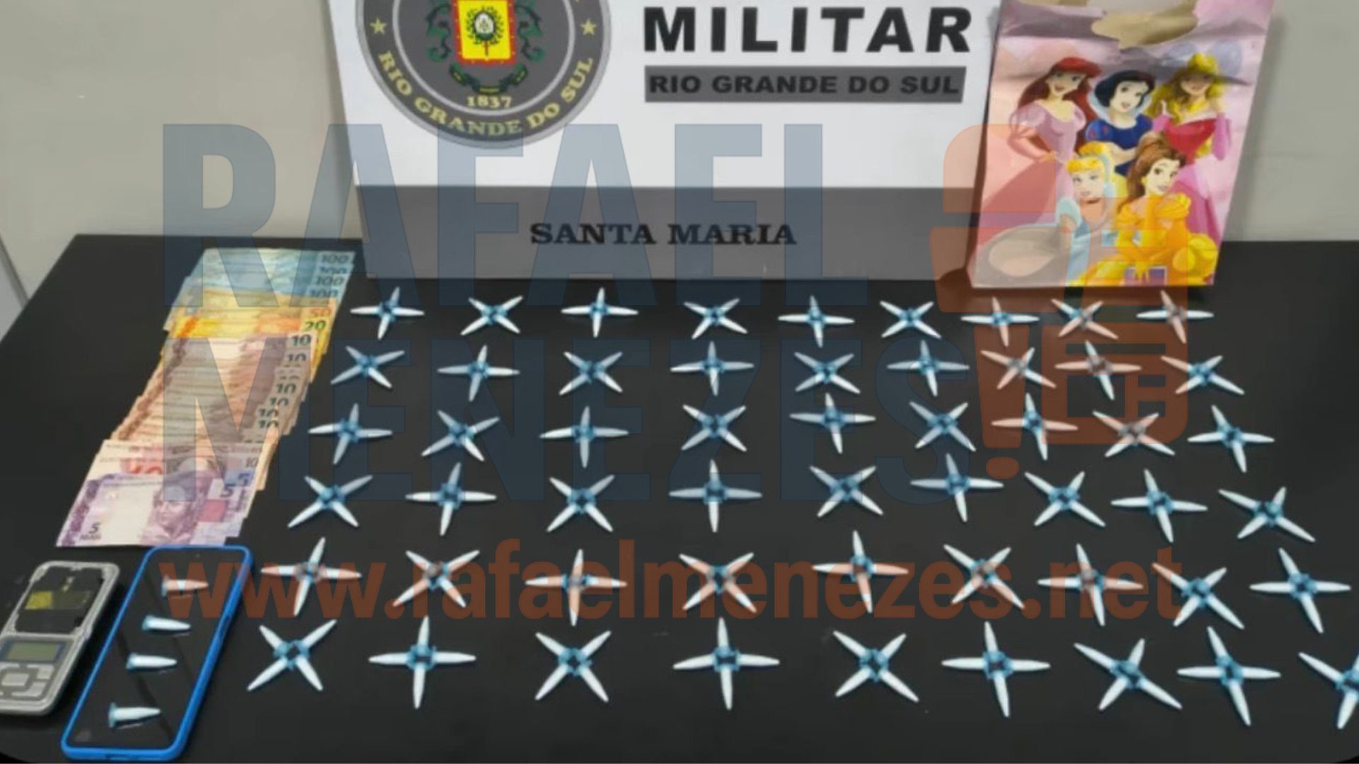 Um homem foi preso por tráfico de drogas na noite de domingo (8), por volta das 20h30min, na Rua Eugênio Mussoi, no bairro Urlândia, em Santa Maria.