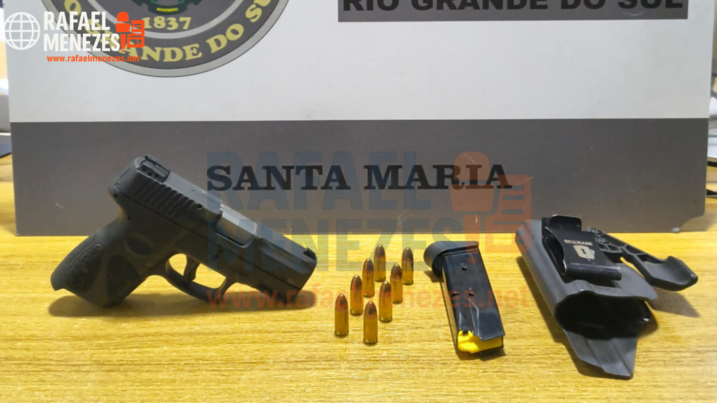 A ação foi realizada pela Brigada Militar, por meio do 2º Batalhão de Polícia de Choque (2ºBPChq), durante patrulhamento tático motorizado. Com o suspeito, os policiais apreenderam uma pistola Taurus G2C calibre 9mm, um carregador do mesmo modelo, oito munições calibre 9mm e um coldre de kydex da marca Invictus.