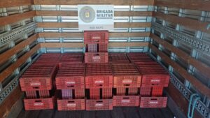 No local, os policiais localizaram 44 caixas provenientes de um furto ocorrido em um atacadista. Durante as buscas no estabelecimento, com o emprego do cão policial, também foi encontrado um rifle adaptado para calibre 22, municiado.