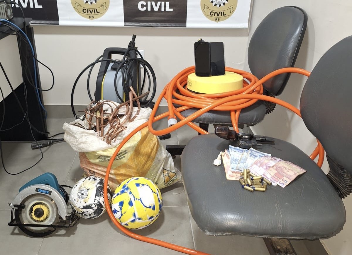 De acordo com a Polícia Civil, a jovem é suspeita de envolvimento no furto ocorrido no domingo em uma escola municipal localizada no bairro Camobi. Durante a ação policial, os agentes localizaram na residência da investigada objetos que teriam sido subtraídos da instituição de ensino, além de uma arma de fogo, caracterizando o crime de posse irregular.