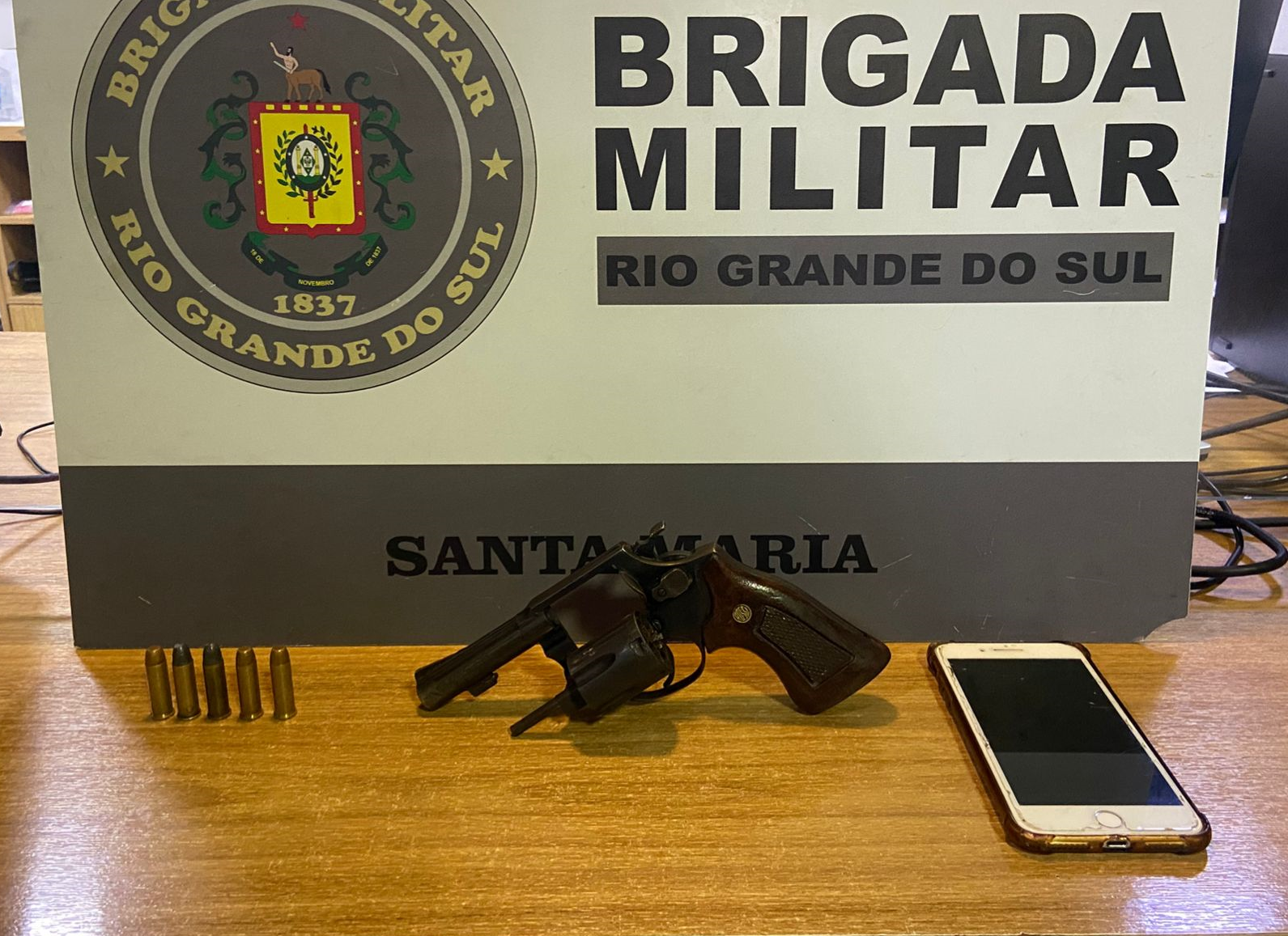 Diante da situação, a equipe realizou a abordagem e, durante a busca pessoal, localizou um revólver calibre .38 municiado com cinco munições intactas. Também foi apreendido um telefone celular.