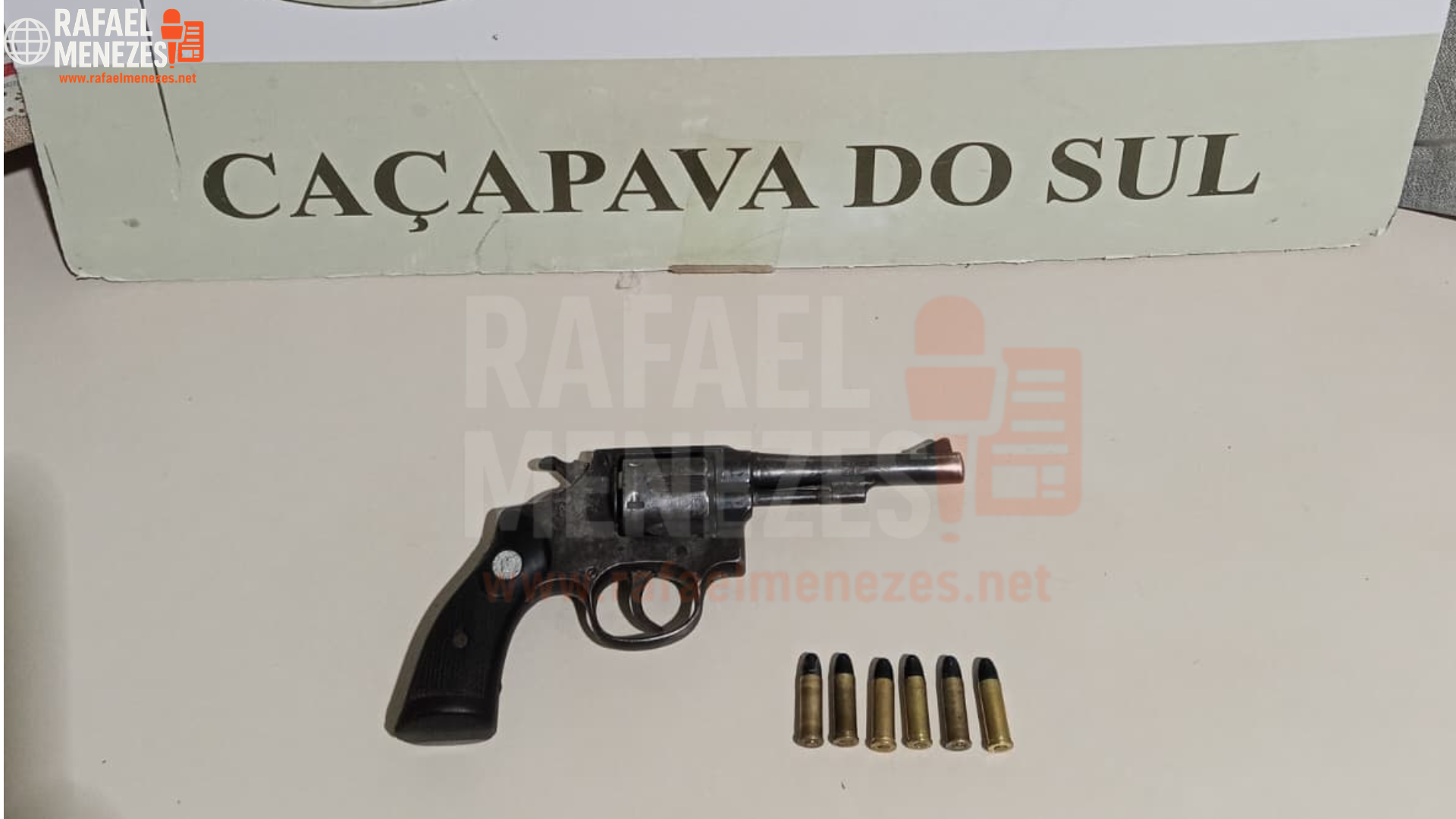 Durante a revista pessoal ao condutor, os policiais militares localizaram um revólver calibre .32, da marca Taurus, municiado com seis cartuchos intactos.
