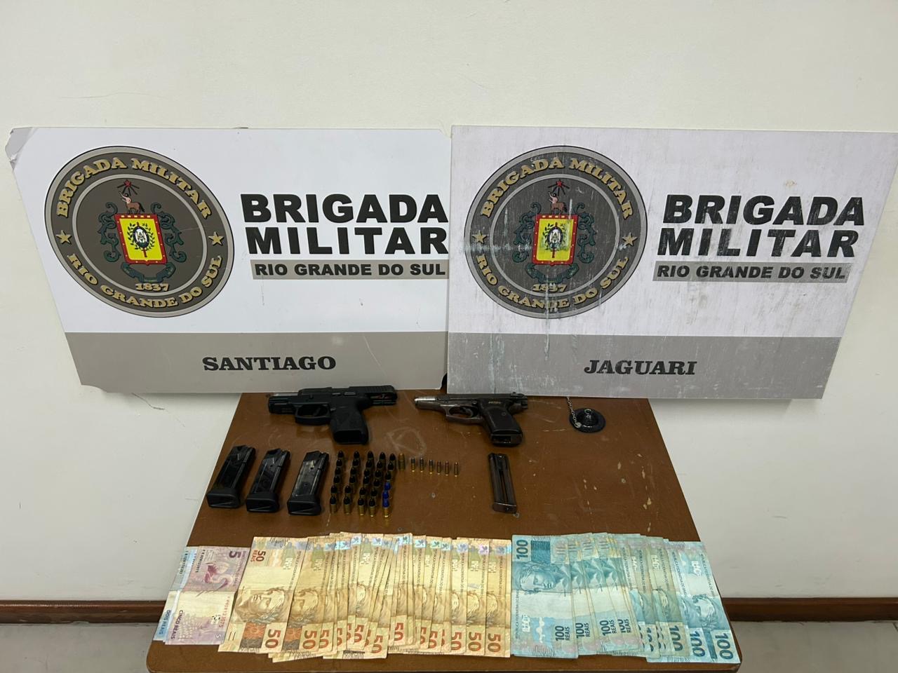 Durante a ação, foram encontradas duas pistolas, uma calibre 22 e outra Taurus G2C calibre 9mm. Além disso, foram apreendidas seis munições calibre 22, trinta e uma munições calibre 9mm, três carregadores de pistola 9mm e R$ 3.459 em dinheiro.