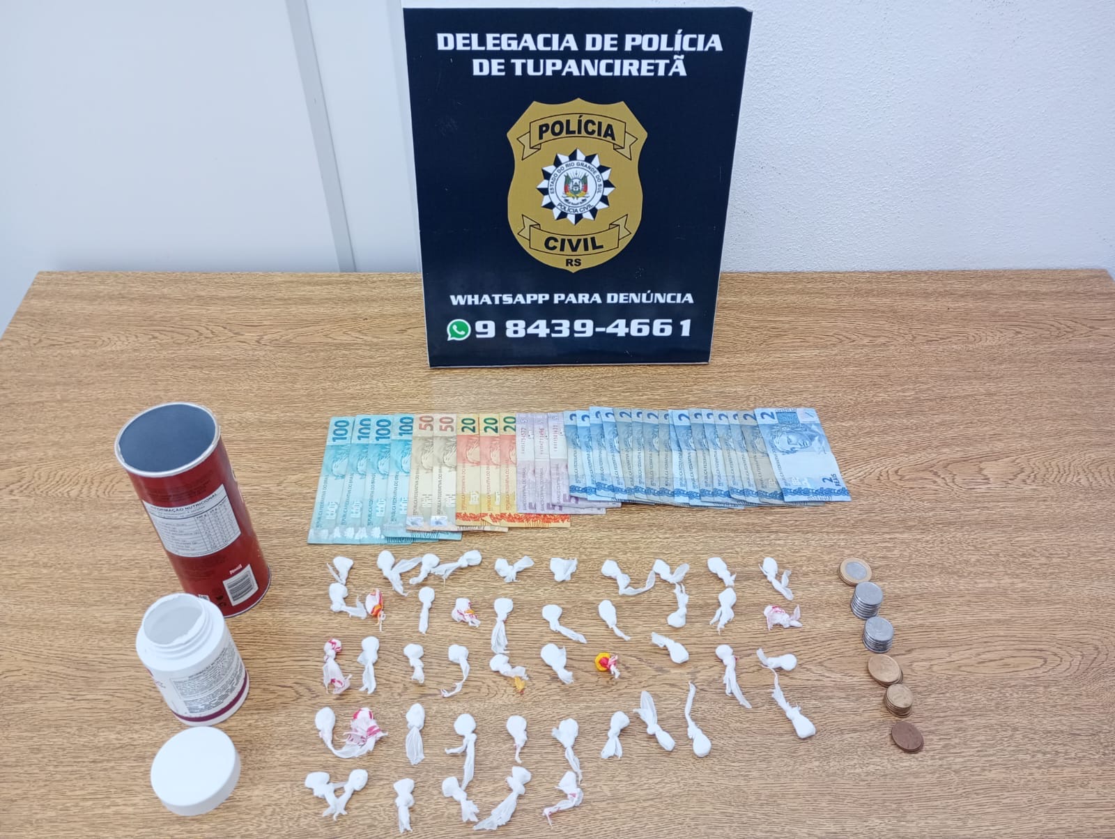 De acordo com a corporação, a diligência ocorreu após investigação prévia e autorização judicial. Durante as buscas na residência da suspeita, localizada no Bairro Centro, os policiais encontraram 46 buchas de cocaína e dinheiro fracionado, o que caracteriza o crime de tráfico.