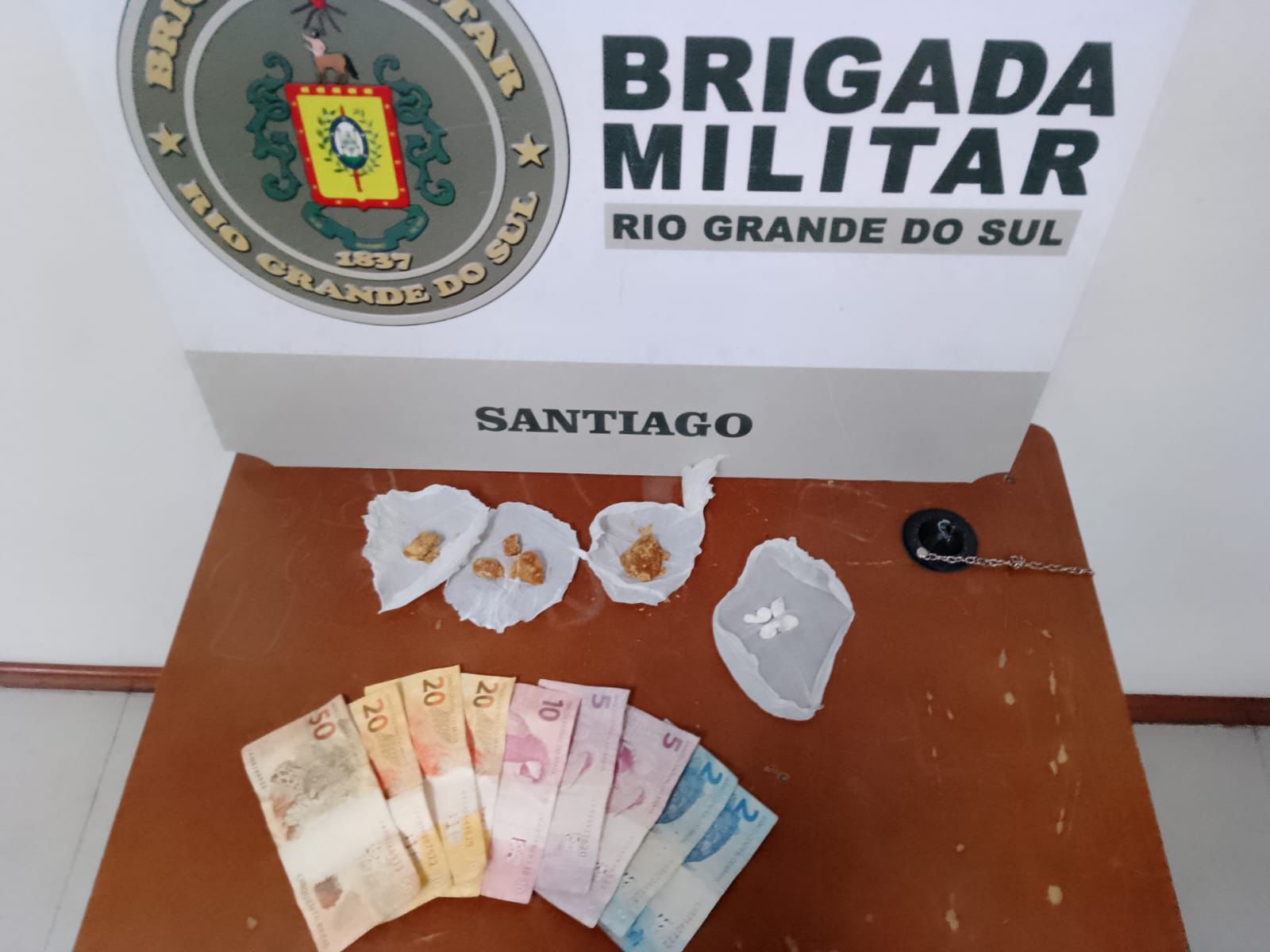 Durante a revista pessoal, foram encontrados dentro das roupas da mulher cinco pedras de crack, quatro porções de cocaína e R$ 134 em dinheiro. Conforme a Brigada Militar, a suspeita já possui antecedentes criminais por envolvimento com o tráfico.