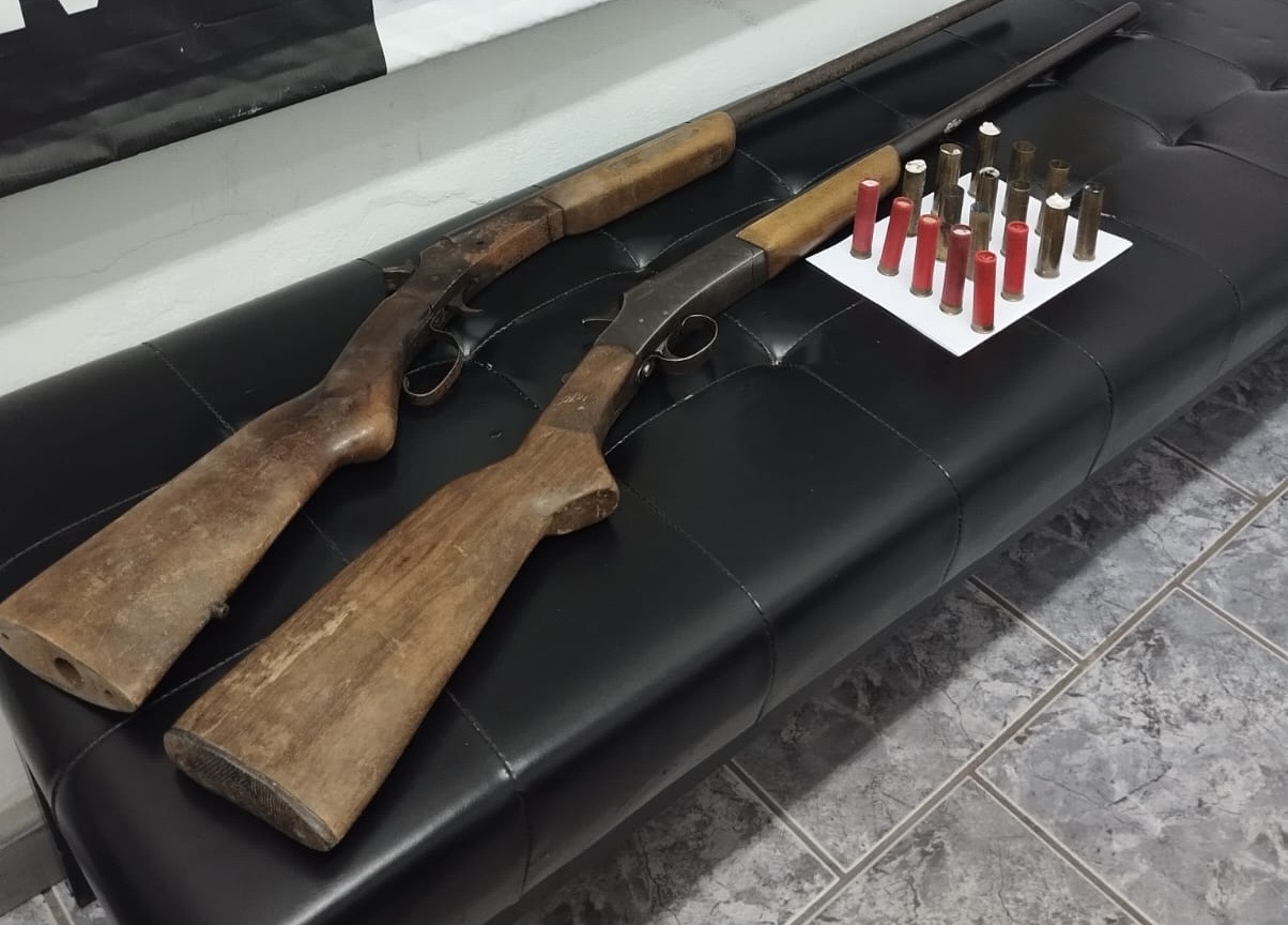 Durante o cumprimento de mandado de busca e apreensão, expedido em razão da investigação, os policiais apreenderam duas espingardas, uma calibre 20 e outra calibre 28, além de munições.