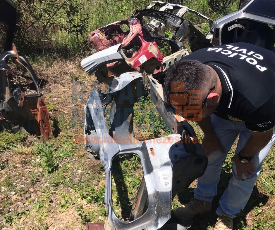 No local, os agentes encontraram um VW SpaceFox parcialmente desmontado, que possuía mandado de busca e apreensão. Também foram apreendidos uma carenagem pertencente a um Chevrolet Prisma furtado ou roubado, além de seis vidros automotivos com sinais identificadores raspados. Técnicos do DETRAN identificaram ainda diversas peças sem as etiquetas obrigatórias de rastreamento, o que reforçou as suspeitas de irregularidades no funcionamento do desmanche.