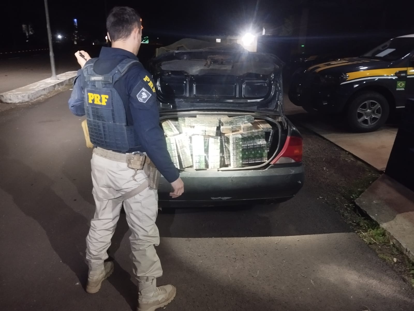 Durante uma operação de combate ao crime, policiais rodoviários federais deram ordem de parada a um Ford Focus que apresentava sinais de estar excessivamente carregado. Na vistoria, os agentes encontraram 20 caixas de cigarros paraguaios, totalizando 10 mil maços introduzidos ilegalmente no país.