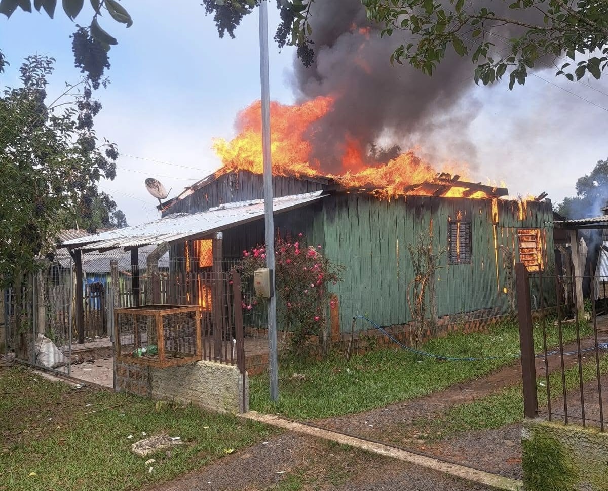 Uma residência foi completamente destruída por um incêndio por volta das 11h desta segunda-feira (7), na Rua da República, em Dilermando de Aguiar. As chamas se espalharam rapidamente e consumiram toda a estrutura da casa, além de móveis, eletrodomésticos, roupas e outros pertences da família.