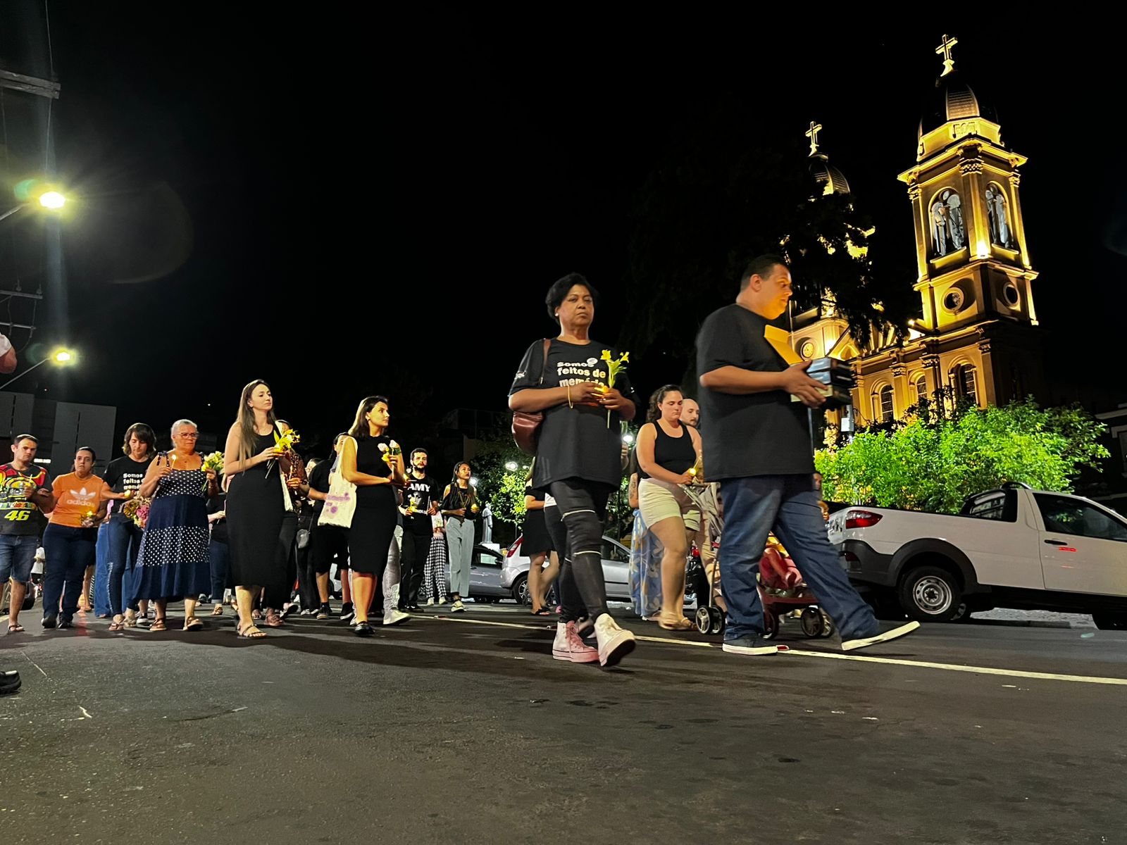 Às 22h, a Caminhada de Vigília teve início. Os presentes seguiram até a Rua dos Andradas, onde funcionava a Boate Kiss, com velas acesas e flores nas mãos, prestando homenagem às 242 pessoas que perderam a vida e às mais de 600 que ficaram feridas no incêndio ocorrido em 2013. A caminhada luminosa refletiu a dor, mas também a força da comunidade para manter viva a memória da tragédia.