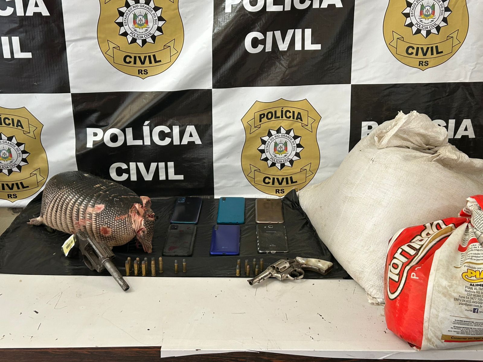 A ação foi coordenada pelo delegado Daniel Severo e contou com o apoio da Brigada Militar. Ao todo, agentes da Delegacia de Polícia cumpriram cinco mandados de busca e apreensão, sendo quatro na localidade da Caleira, no interior do município, e um no Centro da cidade.